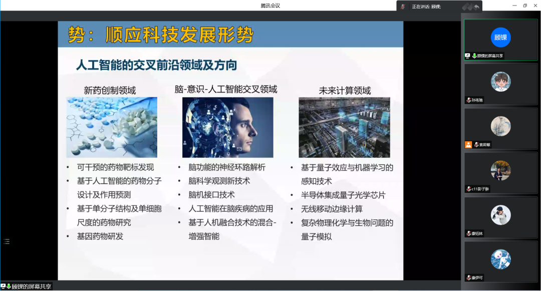 在闭幕式上,信息学部顾锞教授为同学们带来题为“科技人才培养”的荣誉色播平台科学前沿知识讲座,他详细讲述了在人工智能已上升为国家战略形势下的科技发展前景。